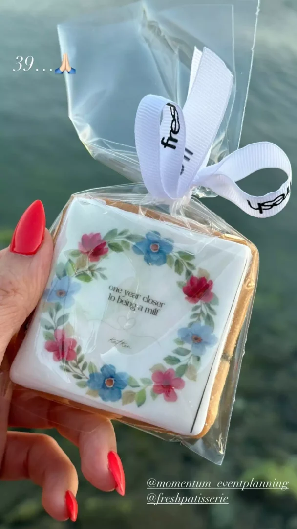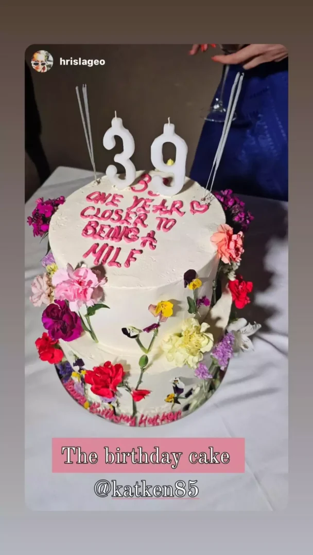 «Ένας χρόνος πιο κοντά στο να γίνω milf» ήταν το μήνυμα της τούρτας, το οποίο αποδεικνύει ότι η Κατερίνα Καινούργιου διαθέτει αρκετό χιούμορ.