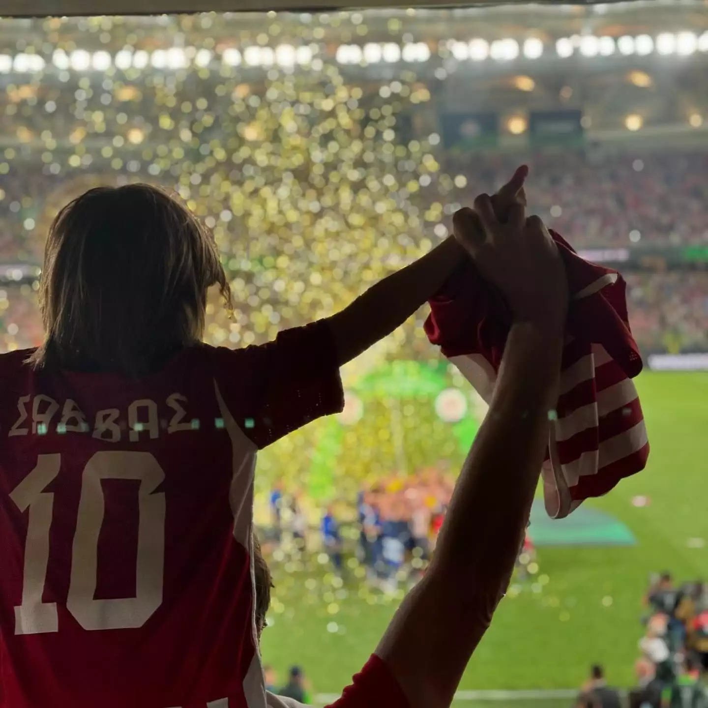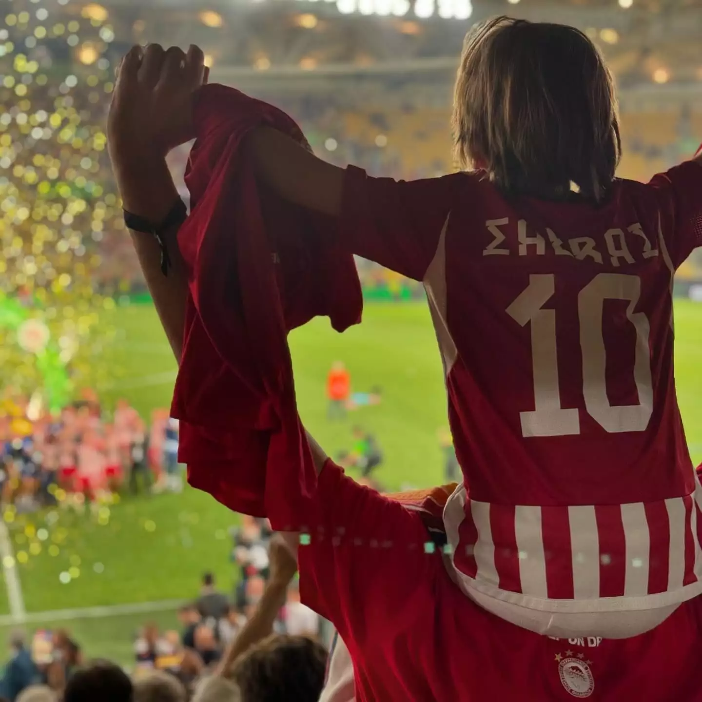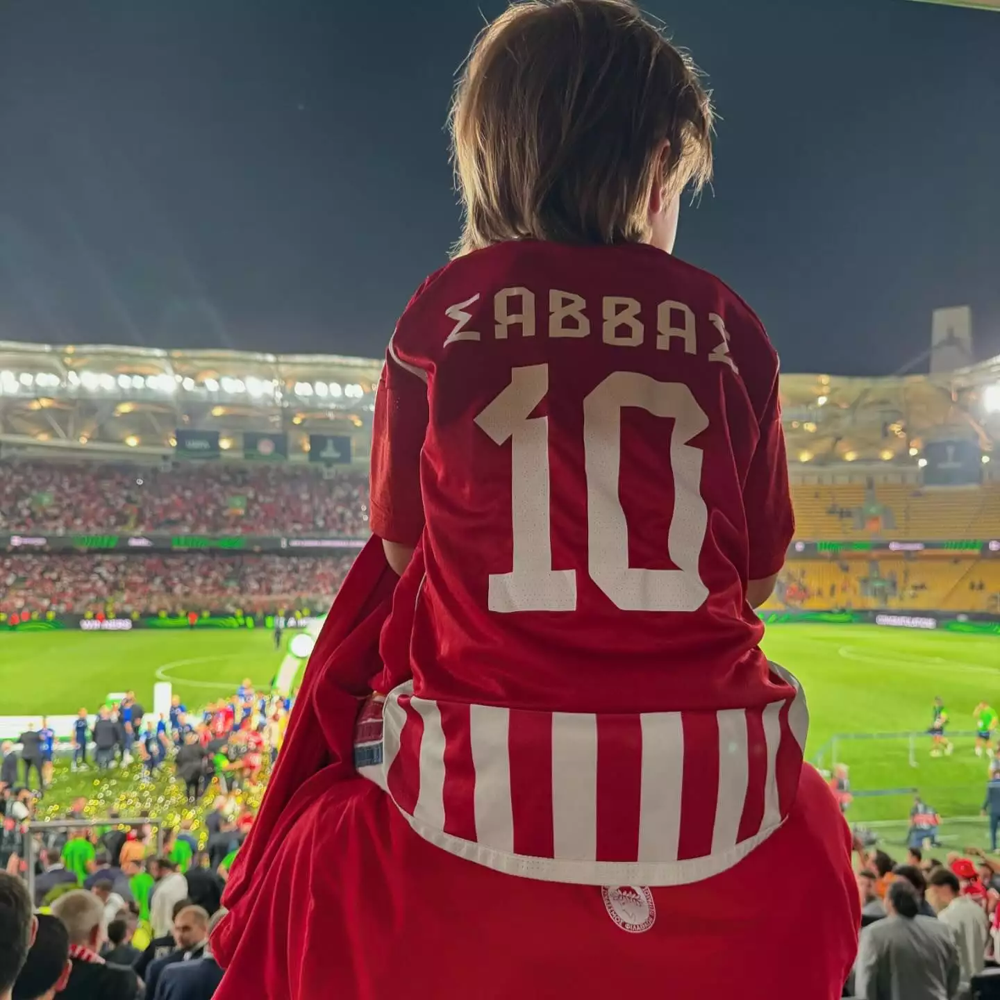 Η Δούκισσα Νομικού βρέθηκε στο γήπεδο μαζί με τον σύζυγό της Δημήτρη Θεοδωρίδη αλλά και τον γιο τους Σάββα, δημοσιεύοντας μάλιστα και μερικά πανηγυρικά στιγμιότυπα μετά το τέλος του αγώνα.