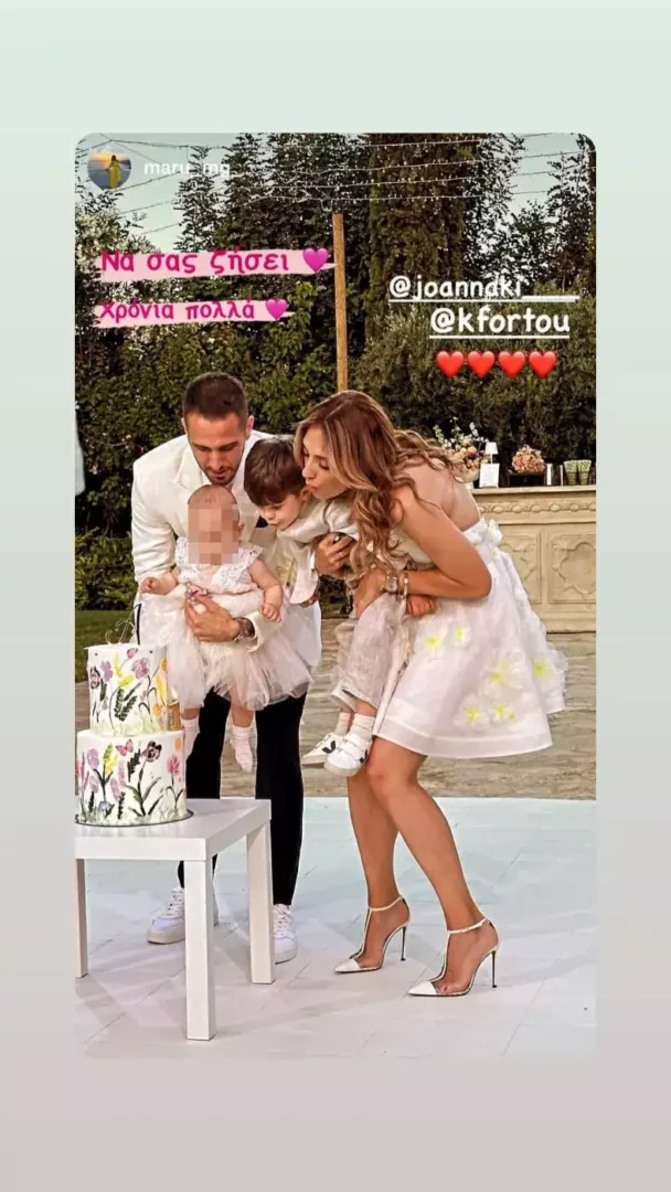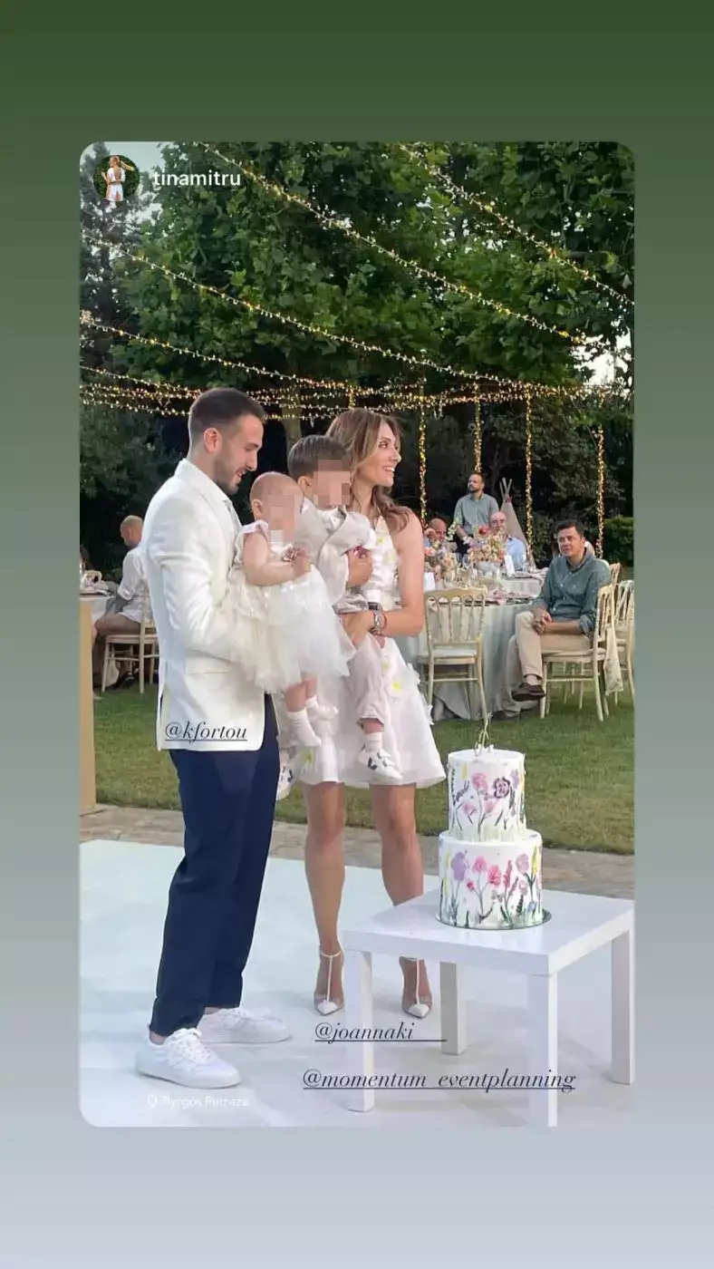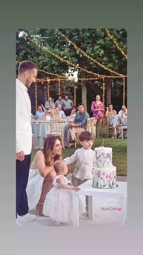 Οι καλεσμένοι του Κώστα Φορτούνη και της συζύγου του, ανέβασαν φωτογραφίες και βίντεο από τη βάφτιση, τα οποία η Ιωάννα Καταραχιά, αναδημοσίευσε στον δικό της λογαριασμό στο Instagram.