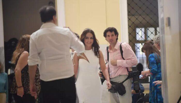 Μετά από επτά μήνες σχέσης, ο γιος της Αλίκης Βουγιουκλάκη και του Γιάννη Παπαμιχαήλ επισημοποίησε τον δεσμό του με πολιτικό γάμο. Η νύφη επέλεξε μία μακριά λευκή εντυπωσιακή δημιουργία, ενώ ο γαμπρός ένα γκρι κοστούμι.