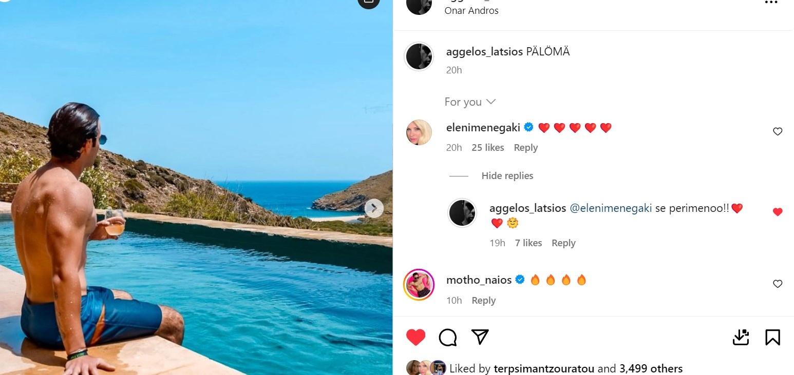 Αυτή τη φορά δημοσίευσε στιγμιότυπα από την ξενοδοχειακή επιχείρηση του Μάκη Παντζόπουλου και έστειλε μήνυμα και στη μητέρα του, Ελένη Μενεγάκη μέσω του προσωπικού του λογαριασμού στο instagram.