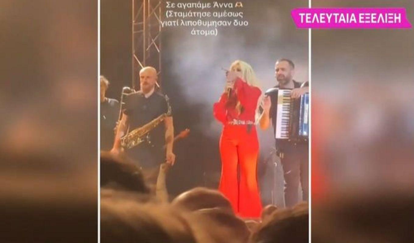 Στην Πάτρα είχε χθες Τετάρτη 3 Ιουλίου συναυλία η Άννα Βίσση, στο πλαίσιο της καλοκαιρινής περιοδείας της. Κάποια στιγμή, η κορυφαία σταρ διέκοψε τη ροή της συναυλίας της, όταν δυο θαυμάστριές της έχασαν τις αισθήσεις τους.