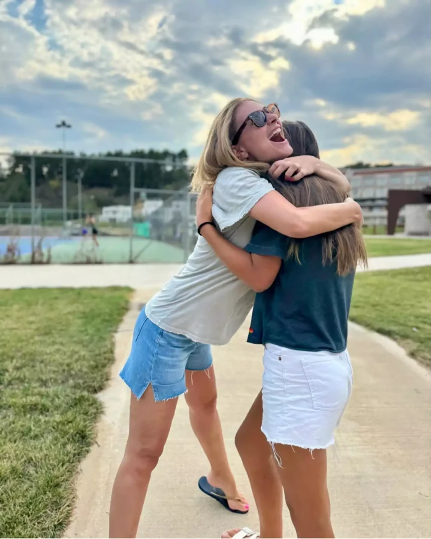 «Η επανένωση. Είχα να την δω έναν μήνα. Έλειπε σε αγώνες εντός και εκτός Ελλάδας. Έσβηνα μέρες. Σήμερα την παρέλαβα από τις Σέρρες. Είναι ψηλότερη από εμένα, έχει πιο μακριά μαλλιά και είναι πιο σοβαρή. Το παιδί μου έφυγε 12 ετών και επέστρεψε 16. Παραλίγο να την λιώσω στην αγκαλιά μου. (Απίστευτη η ωριμότητα που αποκτούν τα παιδιά – αθλητές). Παιδακι μου γλυκό πόσο περήφανη είμαι για εσένα»