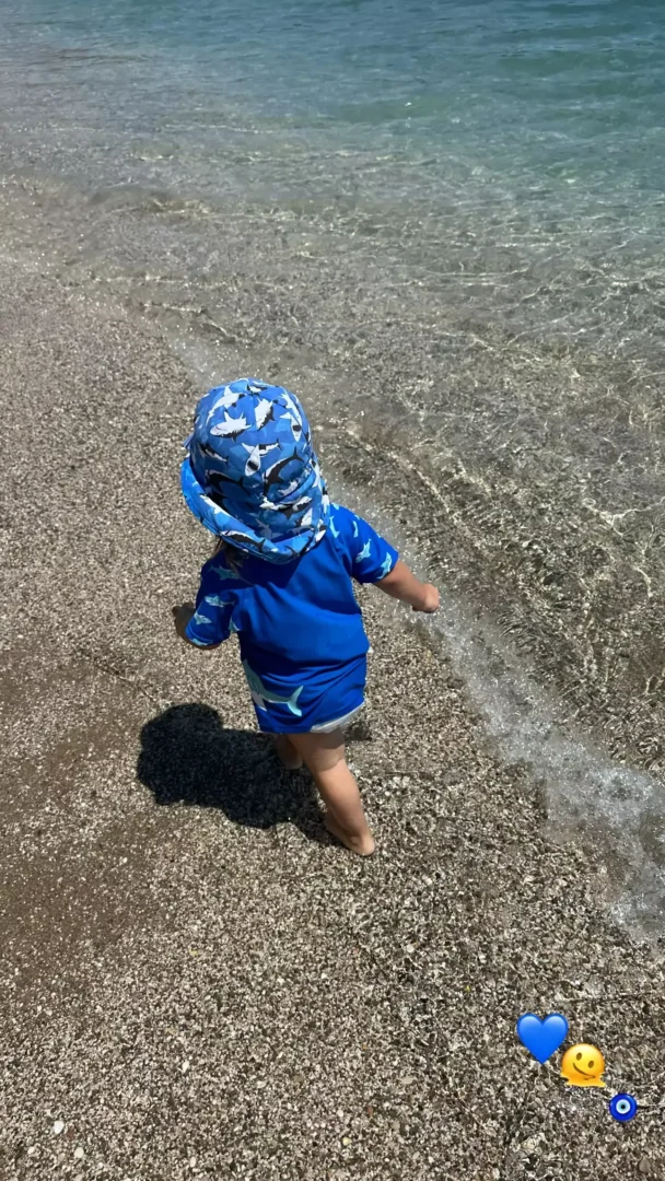 Μάλιστα, δημοσίευσε ένα μοναδικό στιγμιότυπο σε instastory όπου απεικονίζεται ο μεγάλος της γιος, Βλάσσης στην παραλία με beach look να τρέχει…