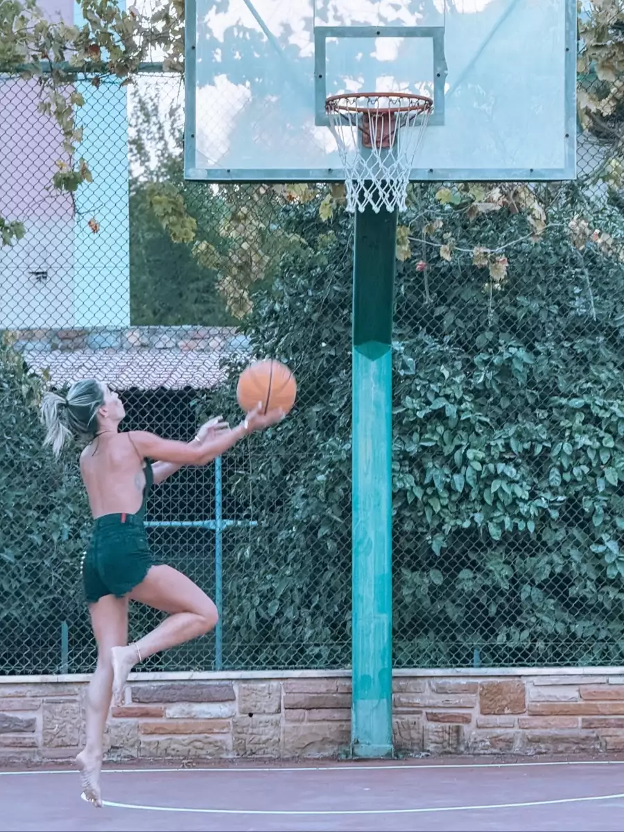 Στη νέα ανάρτησή της η γνωστή ηθοποιός μοιράστηκε στιγμιότυπα από το ανοιχτό γήπεδο μπάσκετ με τον σύντροφό της να την ενθαρρύνει με το σχόλιό του: «Υπάρχει ένα θετικό πράγμα: μπορείς μόνο να βελτιωθείς. Θα δουλέψουμε πάνω σε αυτές τις δεξιότητες!! Πάμε».