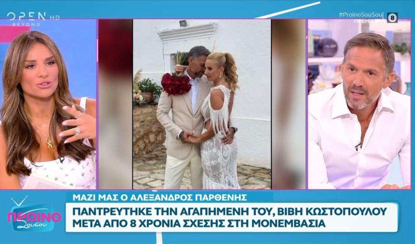 Ο ηθοποιός μεταξύ άλλων, αναφέρθηκε στον γάμο που πραγματοποίησε πριν από λίγες ημέρες με την εκλεκτή της καρδιάς του, αρχιτέκτονα Βιβή Κωστοπούλου στο Κάστρο της Μονεμβασιάς.