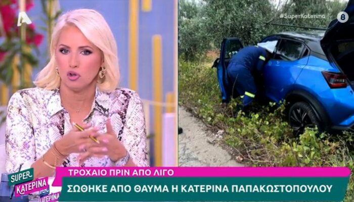 Ένα τροχαίο ατύχημα είχε η Κατερίνα Παπακωστοπούλου το πρωί της Τετάρτης 18/9, λίγο πριν βρεθεί στην Super Κατερίνα, όπου εμφανίζεται καθημερινά.