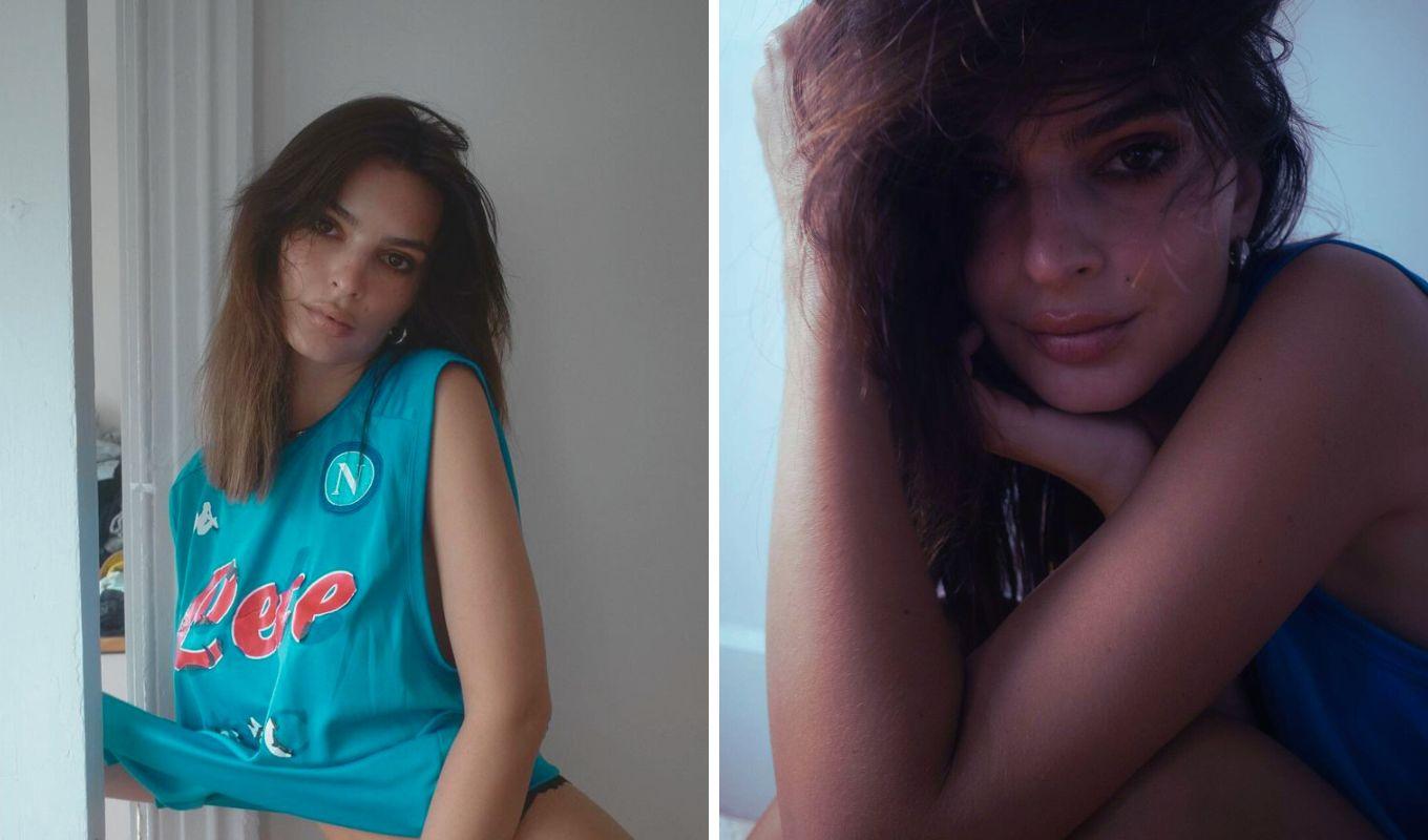 Η Έμιλι Ραταϊκόφσκι πόζαρε ημίγυμνη, φορώντας μια φανέλα της Νάπολι και οι θαυμαστές της -αλλά και των «παρτενοπέι»- στα social media έκαναν χιλιάδες likes στις συγκεκριμένες φωτογραφίες.