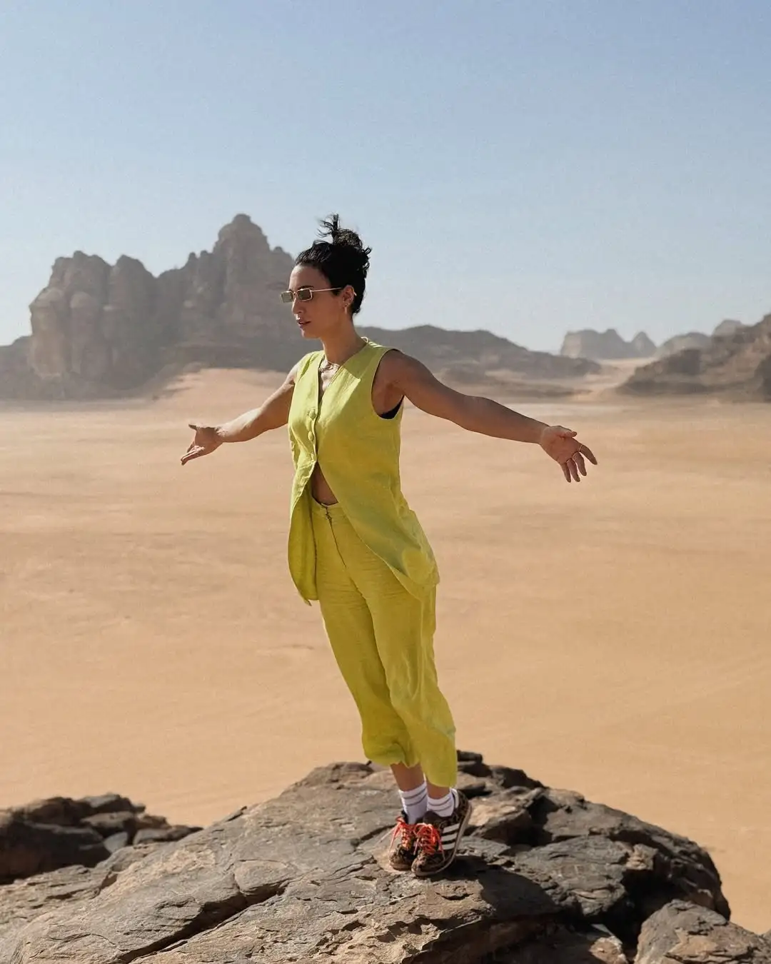 Η ηθοποιός δεν έχασε την ευκαιρία να επισκεφθεί έναν από τους πιο εμβληματικούς αρχαιολογικούς χώρους του κόσμου, την Πέτρα – μια πόλη λαξευμένη μέσα σε κόκκινους βράχους, που μοιάζει να έχει ξεπηδήσει από ταινία φαντασίας. Παράλληλα, απόλαυσε τη μαγεία της Ερήμου Ουάντι Ραμ, ένα τοπίο μοναδικής ομορφιάς που έχει αποτελέσει σκηνικό για πολλές κινηματογραφικές παραγωγές. Δεν παρέλειψε, φυσικά, να δει και άλλα πολιτισμικά και ιστορικά σημεία της χώρας, γεμίζοντας τις μέρες της με εικόνες, χρώματα και αρώματα της Μέσης Ανατολής.