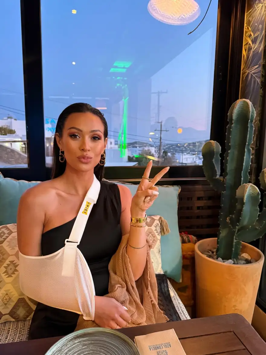 Η ίδια θέλησε να μοιραστεί την εμπειρία της μέσα από τον προσωπικό της λογαριασμό στο Instagram, αναρτώντας φωτογραφίες από το νησί των ανέμων, όπου φαίνεται με δεμένο το χέρι, και γράφοντας ένα συγκινητικό αλλά και ρεαλιστικό μήνυμα για το πόσο ξαφνικά μπορεί να ανατραπούν τα πάντα.