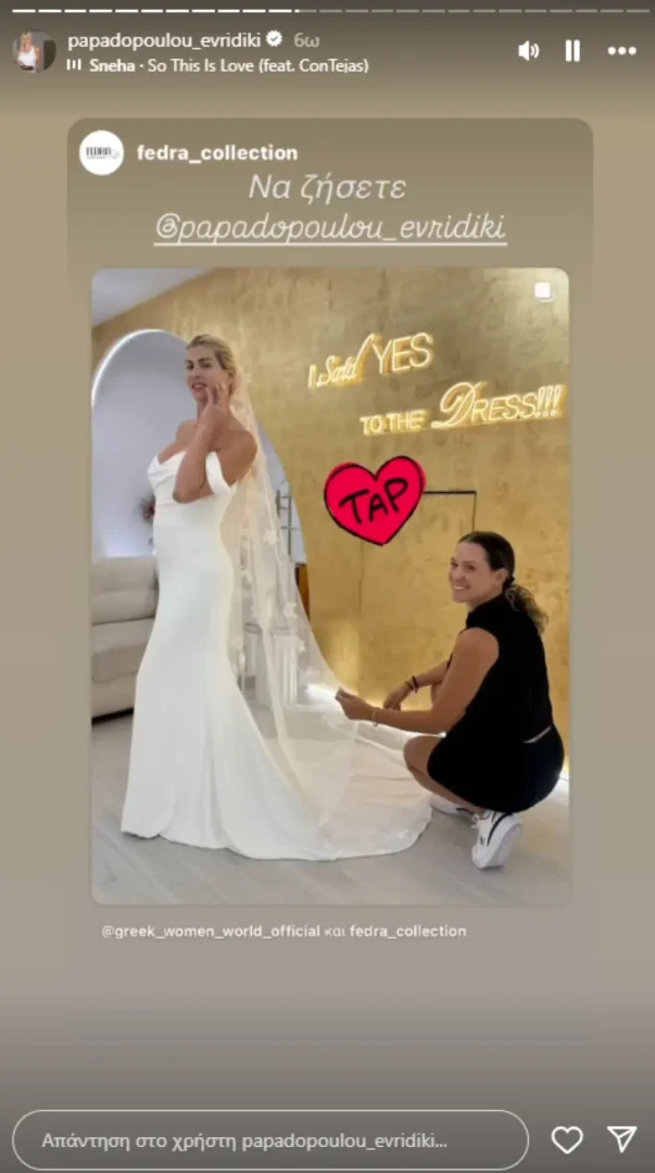 Η ίδια, διατηρώντας κατά κανόνα χαμηλούς τόνους στην προσωπική της ζωή, έκανε μια εξαίρεση αυτή τη φορά, μοιράζοντας με τους ακολούθους της φωτογραφίες και βίντεο τόσο από την τελετή του γάμου, όσο και από τη δεξίωση που ακολούθησε. Αρκετοί από τους καλεσμένους ανάρτησαν στιγμιότυπα από την άφιξη της νύφης στον ναό, συνοδευόμενη από τον πατέρα της, αλλά και από τα όσα ακολούθησαν στη δεξίωση. Η Ευρυδίκη Παπαδοπούλου, με τη σειρά της, αναδημοσίευσε στον προσωπικό της λογαριασμό στο Instagram ορισμένα από αυτά τα στιγμιότυπα, δίνοντας έτσι στο κοινό μια γεύση από την πιο προσωπική και σημαντική στιγμή της ζωής της.