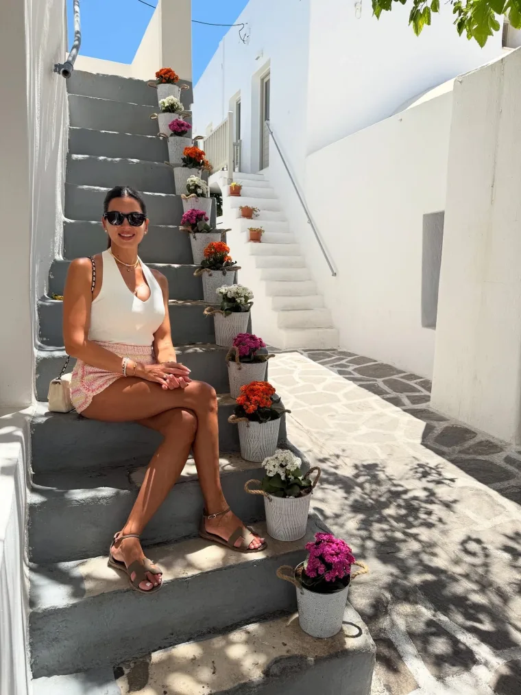 Στις πρώτες φωτογραφίες που δημοσίευσε στον προσωπικό της λογαριασμό στο Instagram, η Σταματίνα δείχνει να απολαμβάνει ξέγνοιαστες στιγμές δίπλα στη θάλασσα, σε γραφικά σοκάκια του νησιού και σε παραδοσιακές ταβέρνες, προσφέροντας μια αυθεντική καλοκαιρινή αίσθηση.