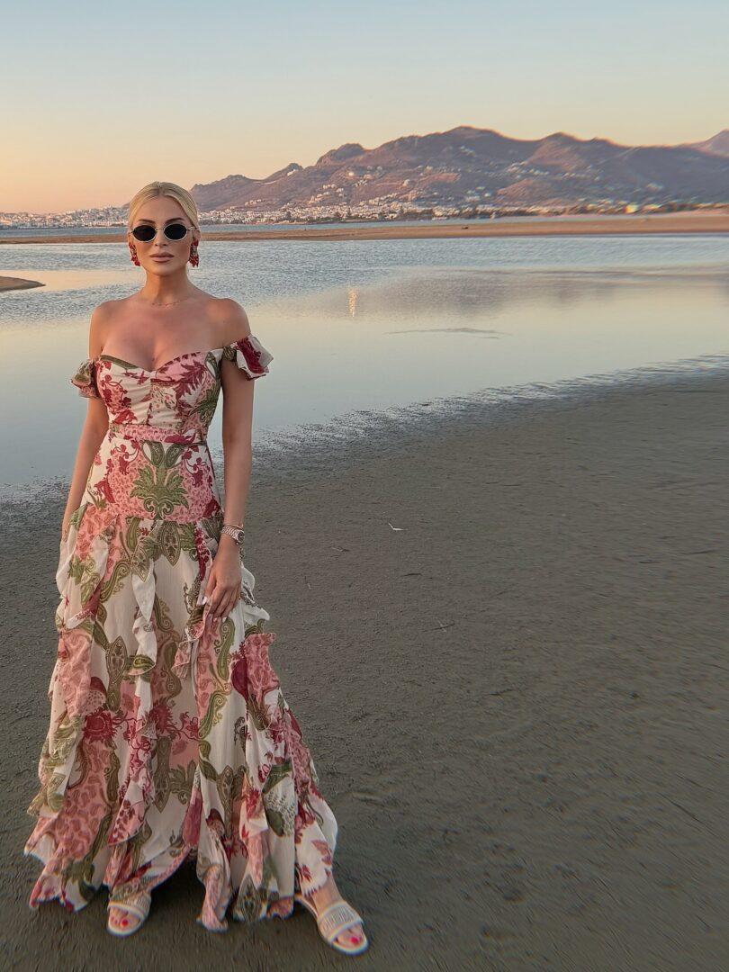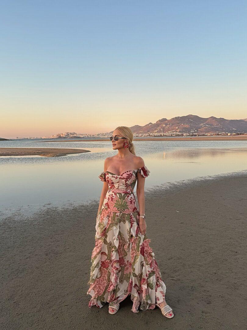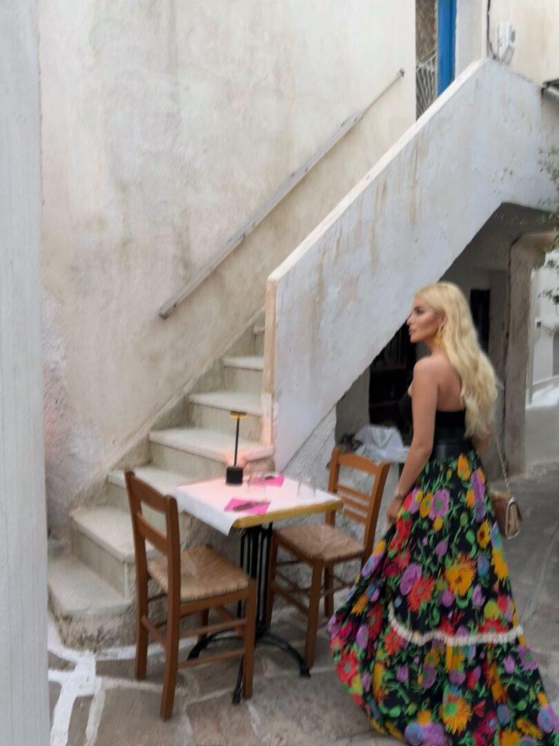 «Στην πανέμορφη Νάξο… 🇬🇷 Μέσα στο απέραντο γαλάζιο, το υπέροχο ηλιοβασίλεμα και τα λευκά σοκάκια της, βρίσκεις την αλήθεια της απλότητας και την ουσία της ευτυχίας… Τόσο ευλογημένη 🙏💙».