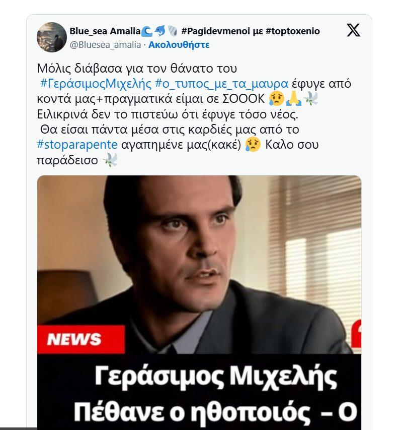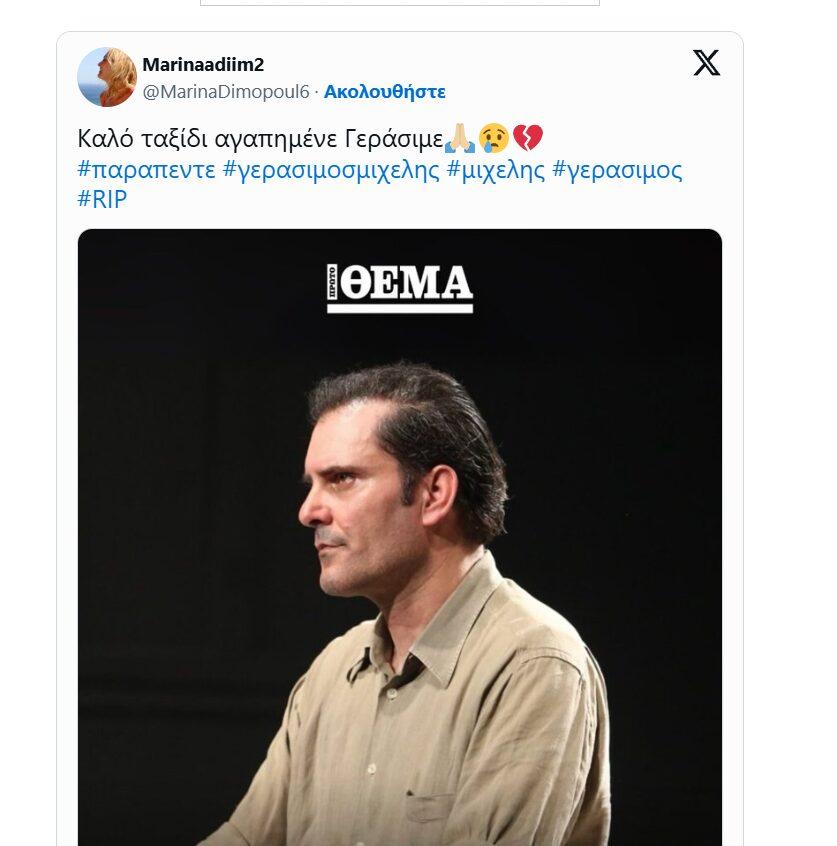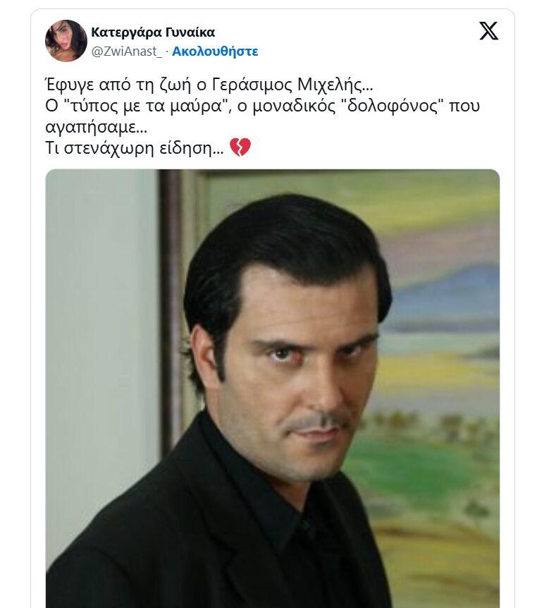 Γεράσιμος Μιχελής: Θρήνος στο Χ – “Ο μοναδικός “δολοφόνος” που αγαπήσαμε”
