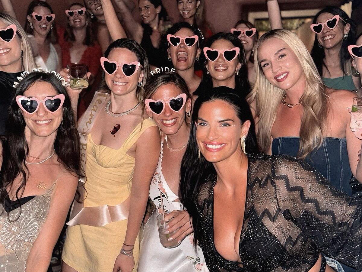 Όπως θα δεις και στις εικόνες, η σύζυγος του Σάκη Τανιμανίδη, μαζί με τις υπόλοιπες κοπέλες της παρέας είχαν ετοιμάσει ασορτί ρούχα και καπέλα για την παραλία, ενώ για τη βραδινή τους εμφάνιση είχαν επιλέξει όλες ροζ γυαλιά σε σχήματα καρδούλας.