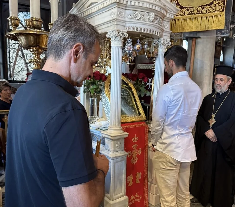 Μια ιδιαίτερη στιγμή πίστης και συμβολισμού έζησαν ο πρωθυπουργός Κυριάκος Μητσοτάκης και ο κορυφαίος Σέρβος τενίστας Νόβακ Τζόκοβιτς, κατά την κοινή τους επίσκεψη στην Παναγιά της Τήνου. Ο 37χρονος θρύλος των Grand Slam, που φημίζεται για την αφοσίωσή του στη θρησκεία, ζήτησε από τον πρωθυπουργό να επισκεφθούν μαζί τη Μεγαλόχαρη, θέλοντας να προσκυνήσει την ιστορική και θαυματουργή εικόνα.