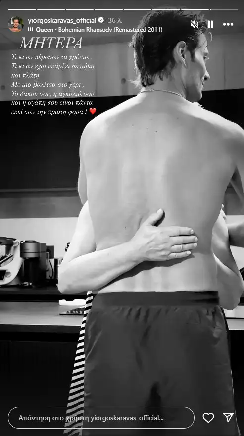 Λίγο πριν αναχωρήσει για τα γυρίσματα του ριάλιτι, ο Γιώργος Καράβας αφιέρωσε χρόνο στην οικογένειά του, που τον στήριξε και τον αποχαιρέτησε με αγάπη και τρυφερές εκπλήξεις. Ο ίδιος μοιράστηκε μάλιστα συγκινητικά μηνύματα μέσα από τα social media, δείχνοντας την ευγνωμοσύνη του για την αδιάκοπη στήριξη που λαμβάνει από τους δικούς του ανθρώπους. Ανάμεσα σε αυτά ξεχώρισε το μήνυμά του προς τη μητέρα του:
