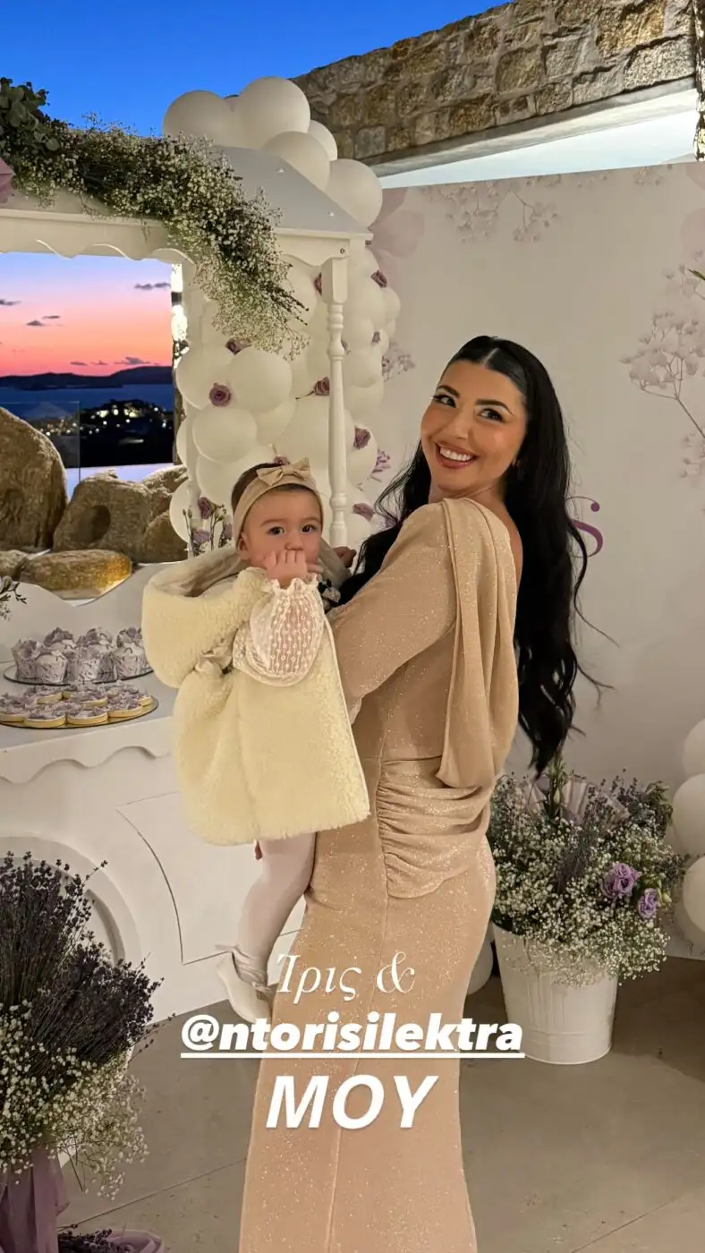 Η γνωστή επιχειρηματίας και social media star ταξίδεψε στο νησί ειδικά για την περίσταση, συνοδευόμενη φυσικά από τον δύομισι ετών γιο της, τον μικρό Πάρη, ο οποίος έδωσε έναν τόνο γλυκύτητας στο event. Η Τούνη, μαζί με τις φίλες της Στέλλα και Λένια, βάφτισαν την κόρη της κολλητής τους, δίνοντας στο κοριτσάκι το υπέροχο όνομα Ίρις, ένα όνομα εμπνευσμένο από το ουράνιο τόξο.