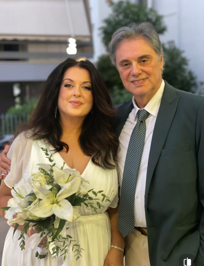 Στο πλευρό τους, όπως φάνηκε και από τις φωτογραφίες, βρέθηκε και ο αδερφός του και ηθοποιός, Ισίδωρος Σταμούλης. Μετά την τελετή, ο ηθοποιός και η σύζυγός του πόζαραν αγκαλιασμένοι και χαμογελαστοί.