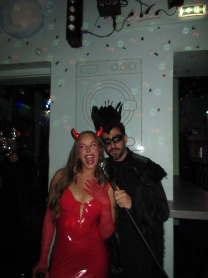 Η ίδια, σύμφωνα με αναρτήσεις στο Instagram, μεταμφιέστηκε σε «διαβολάκι», ενώ ο Γιώργος Λιβάνης ακολούθησε το θέμα, ντυμένος ως «δαίμονας». Στο πάρτι παρευρέθηκε και η καλή τους φίλη, Γαρυφαλλιά Καληφώνη, η οποία επέλεξε μια ανατριχιαστική εμφάνιση ως «ματωμένη νύφη».
