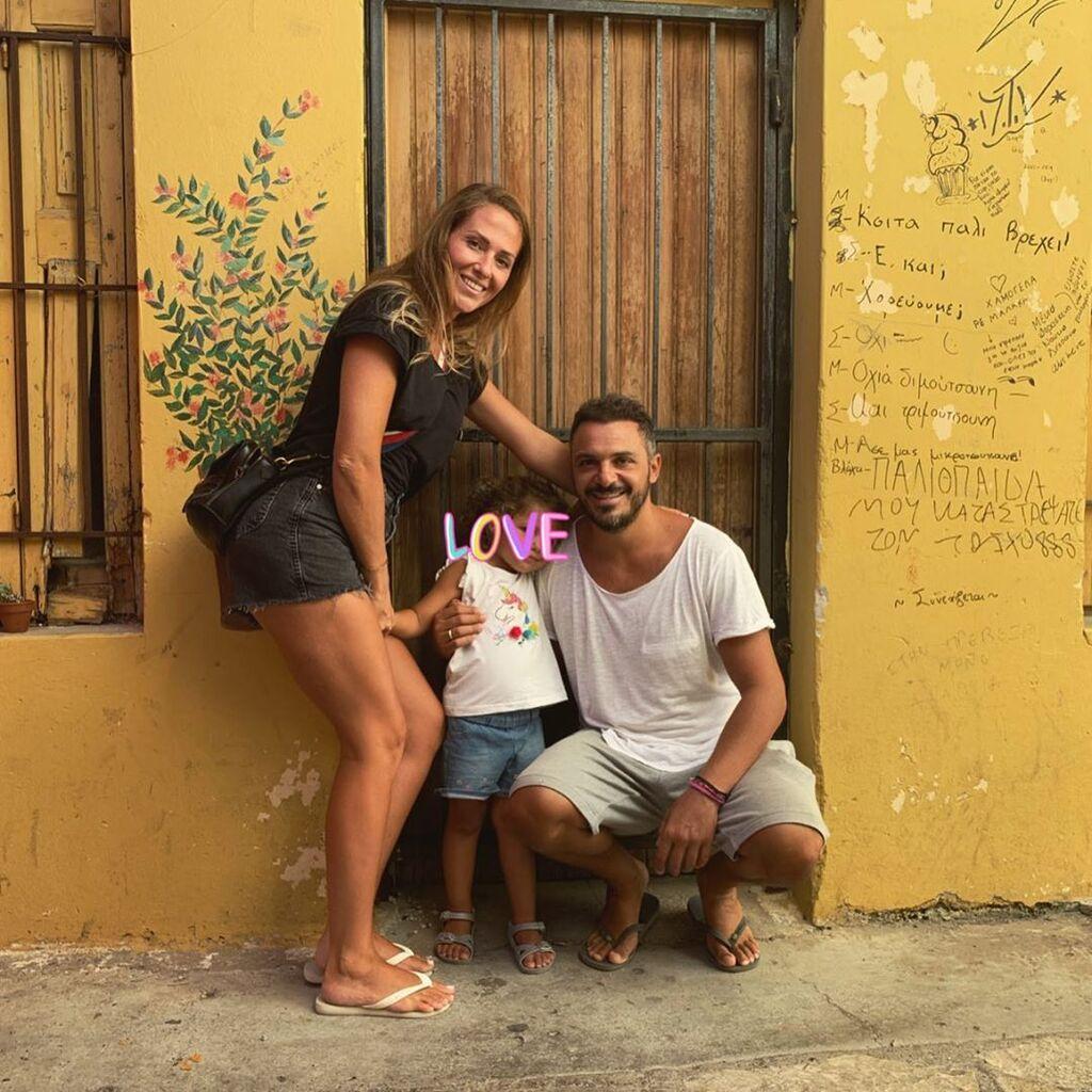 Ο Κώστας Δόξας με την πρώην πλέον σύζυγό του Μαρία Δεληθανάση και την κορούλα τους.