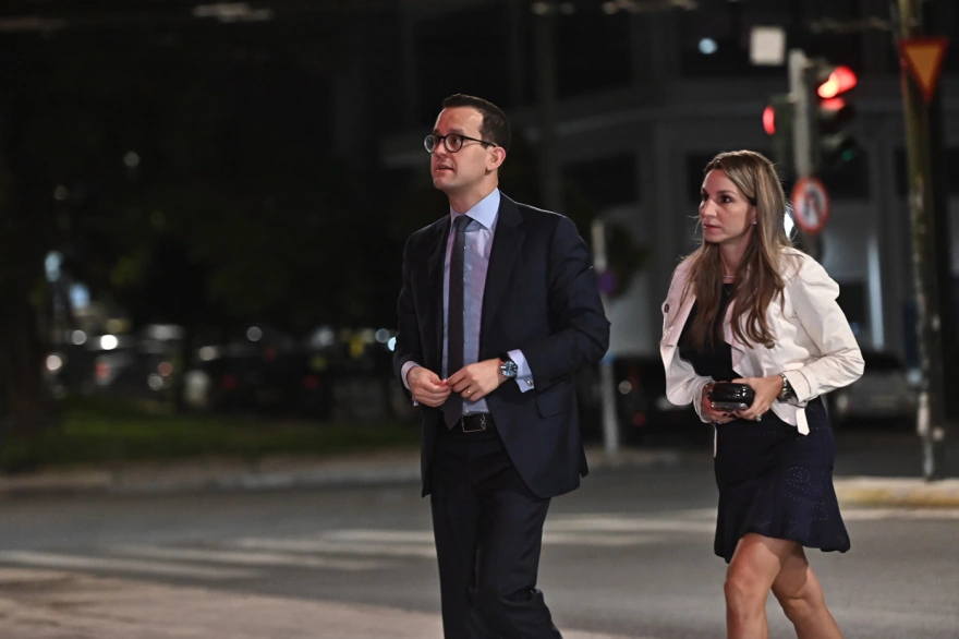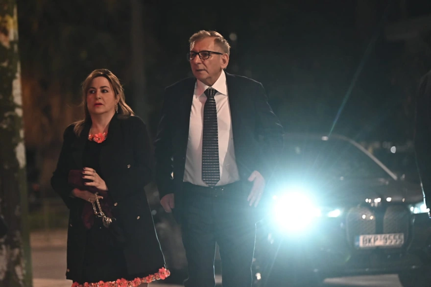 Ο Γιώργος Προκοπίου και η σύζυγός του Αλεξάνδρα φτάνουν μαζί με τη Νίκη Κεραμέως