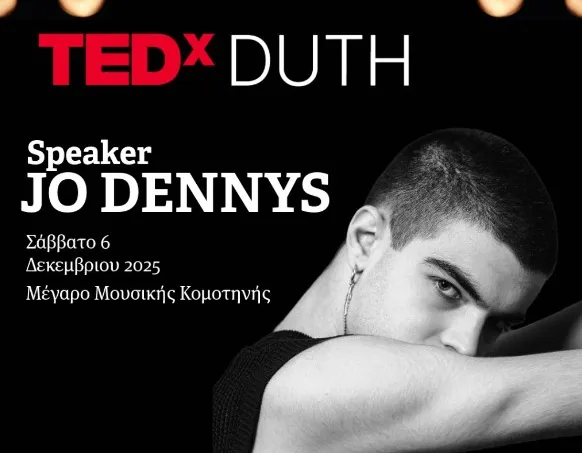 Ο Jo Dennys θα βρεθεί στη σκηνή του TEDxDUTH σε μια το δίχως άλλα πολυαναμενόμενη ομιλία από το μοντέλο. Το TEDxDUTH επιστρέφει δυναμικά το 2025, παρουσιάζοντας μια θεματική που θέλει να εμπνεύσει και να ανοίξει νέους δρόμους σκέψης. Ανάμεσα στα πρόσωπα που θα ανέβουν στη σκηνή του, θα βρίσκεται και ο Jo Dennys, μία από τις πιο χαρακτηριστικές και πολυσυζητημένες παρουσίες της σύγχρονης queer κοινότητας στην Ελλάδα. Με έντονη δραστηριότητα στον χώρο της μόδας, της τέχνης και των social media, ο Dennys έχει καταφέρει να ξεχωρίσει για το στιλ του, την καλλιτεχνική του ταυτότητα και τη συνεχή δημόσια τοποθέτησή του σε κοινωνικά ζητήματα.