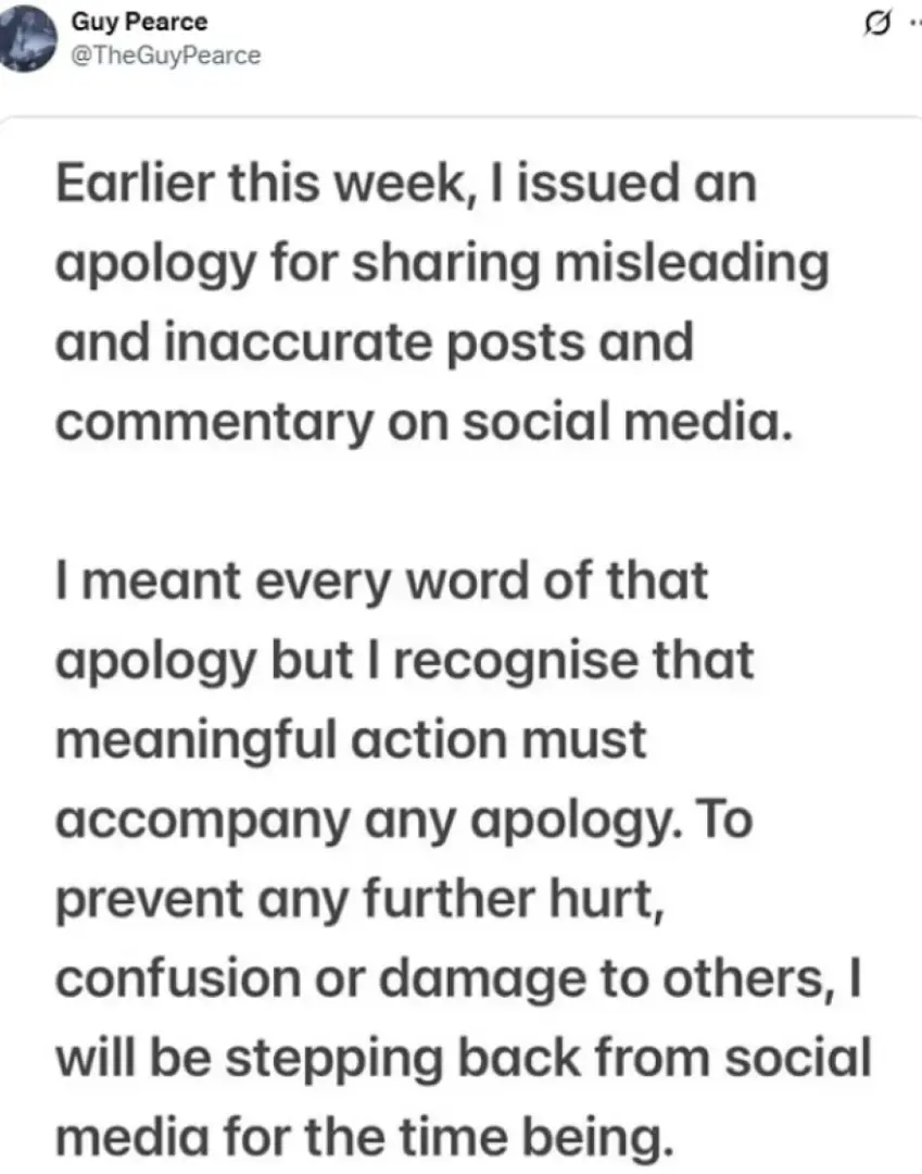 Guy Pearce receives backlash over shock political posts – as he makes a huge call about his social media presence https://t.co/4BjyWQqnr5
