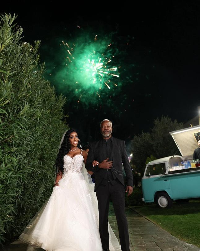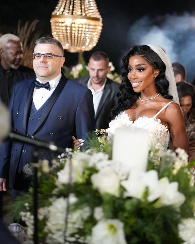 Η νύφη έκανε μία άκρως εντυπωσιακή είσοδο, φτάνοντας στην εκκλησία μέσα σε Ferrari, κλέβοντας τα βλέμματα όλων. Ο στολισμός ήταν πολυτελής, με εντυπωσιακά λουλούδια και χρυσές λεπτομέρειες, ενώ κυριάρχησε το χρυσό στοιχείο σε κάθε λεπτομέρεια της τελετής – από τα στέφανα μέχρι τις μπομπονιέρες.