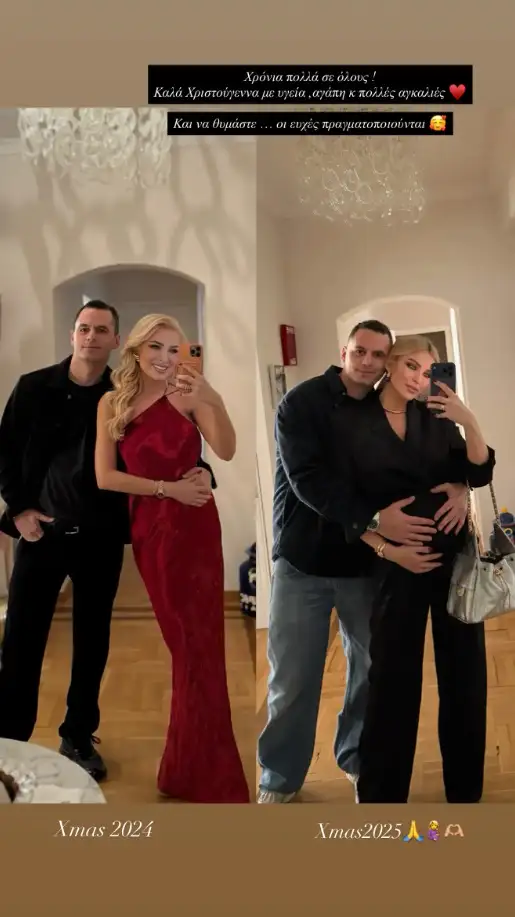 Την ημέρα των Χριστουγέννων, η Κατερίνα και ο Παναγιώτης πόζαραν μαζί, αναπαράγοντας μια φωτογραφία που είχαν τραβήξει και πέρυσι, στην ίδια ακριβώς στάση. Η διαφορά, όμως, φέτος είναι συγκινητική: η φουσκωμένη κοιλιά της παρουσιάστριας, που μαρτυρά το νέο κεφάλαιο που ανοίγει στη ζωή τους. Η εικόνα αποπνέει τρυφερότητα, σταθερότητα και μια αίσθηση πληρότητας που δύσκολα περιγράφεται με λόγια.