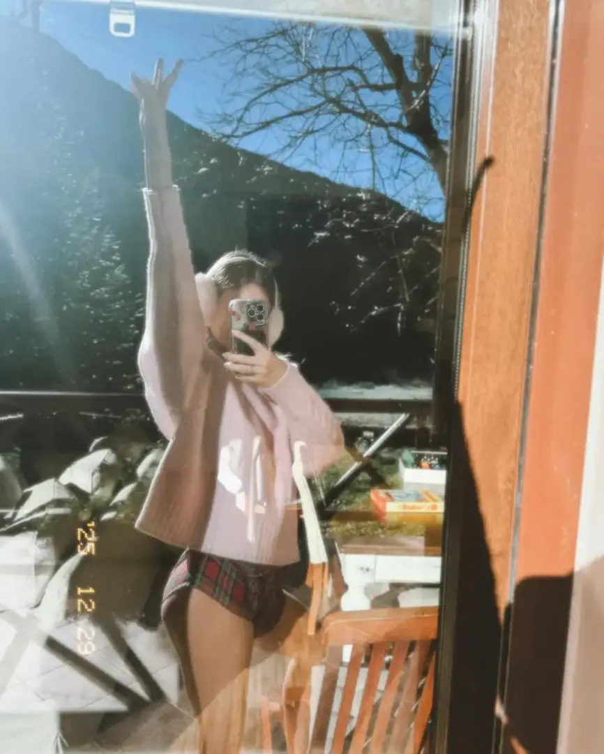 Στα εν λόγω στιγμιότυπα που δημοσίευσε στον προσωπικό της λογαριασμό στο Instagram, η πρωταγωνίστρια του Maestro απαθανατίζεται στο μπαλκόνι του καταλύματος στο οποίο έμεινε, φορώντας ένα πουλόβερ και σορτσάκι.