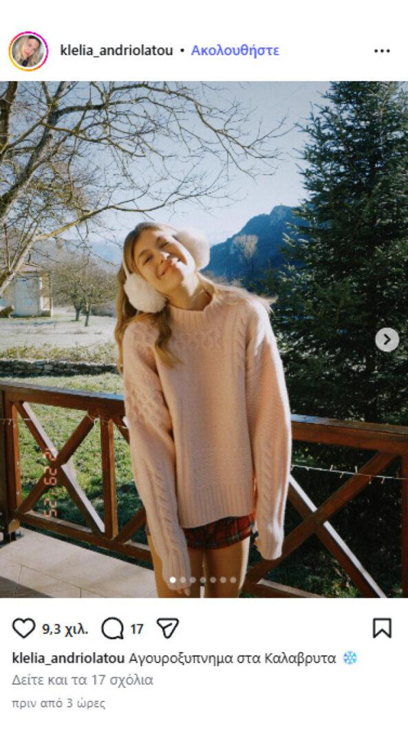 Στα Καλάβρυτα βρέθηκε τις ημέρες των εορτών η Κλέλια Ανδριολάτου, με την ηθοποιό να μοιράζεται εικόνες από την απόδρασή της με τους διαδικτυακούς της ακόλουθους.