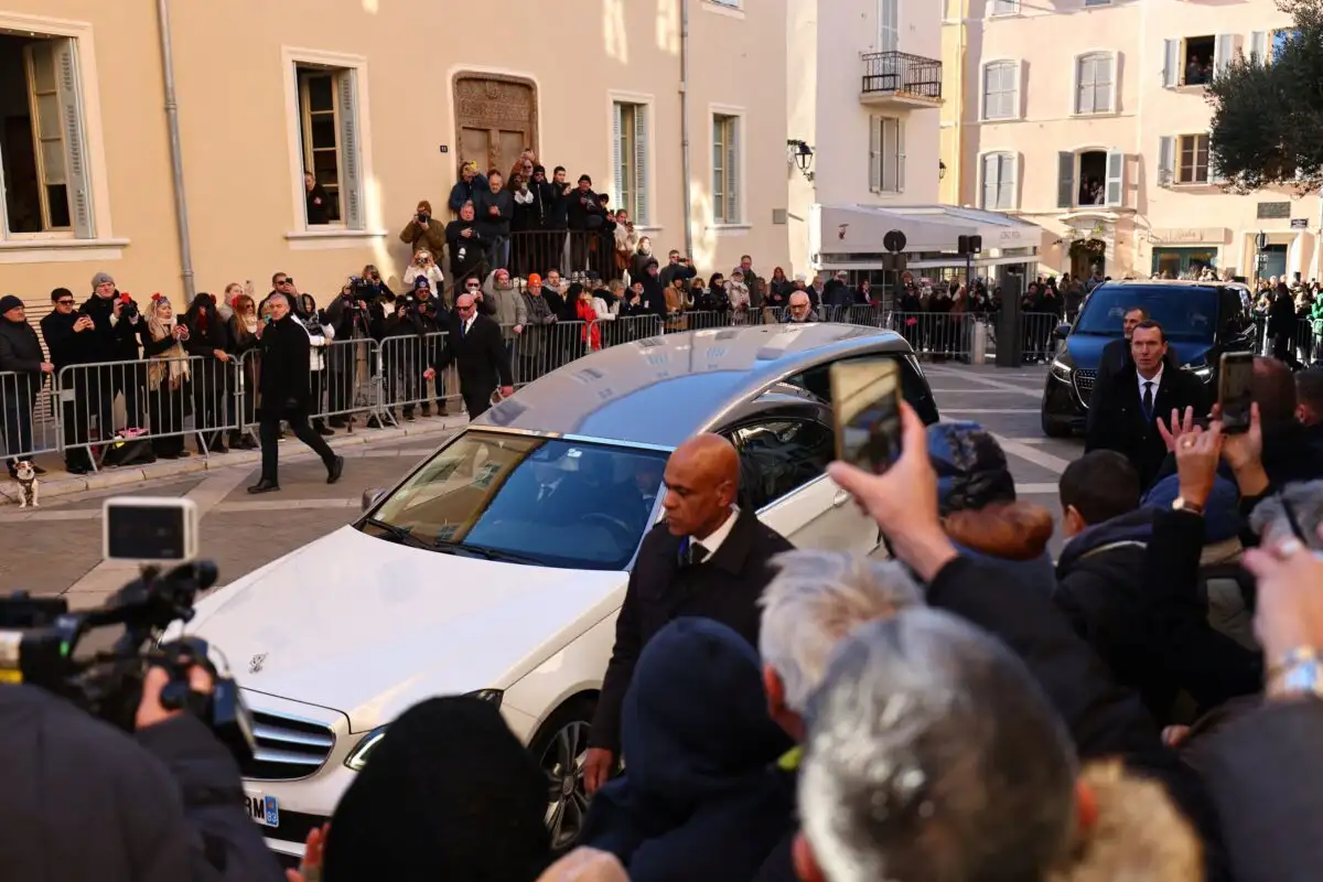 Μετά από μια πομπή που διέσχισε το πλήθος στο Σαν Τροπέ, υπό χειροκροτήματα και γαυγίσματα σκύλων, το φέρετρο της Μπριζίτ Μπαρντό έφτασε στην εκκλησία της Notre-Dame-de-l’Assomption, όπου πραγματοποιείται η τελετή. Το ψάθινο φέρετρο, ήταν στολισμένο με πολύχρωμα λουλούδια ενώ η φωνή της Μαρία Κάλλας ηχεί με ένα «Ave Maria», προσδίδοντας στην ατμόσφαιρα συγκίνηση και σεβασμό. Αξίζει να σημειωθεί ότι για τους χιλιάδες θαυμαστές που έχουν συγκεντρωθεί παρά το τσουχτερό κρύο, η τελετή μεταδίδεται σε γιγαντοοθόνες στους δρόμους του Σεν Τροπέ.