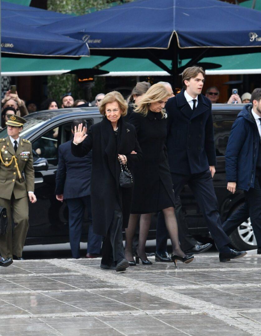 Η παρουσία του κόσμου ήταν έντονη από νωρίς, με πολίτες να στέκονται έξω από τη Μητρόπολη για να τιμήσουν τη μνήμη της, ενώ το κλίμα παρέμενε βαρύ και φορτισμένο συναισθηματικά. Λίγα λεπτά πριν από τις 12 το μεσημέρι, έφτασε στον ναό εμφανώς συγκινημένη η βασίλισσα Σοφία της Ισπανίας, η οποία δεν έκρυψε τη συναισθηματική της φόρτιση σε αυτή τη δύσκολη στιγμή.