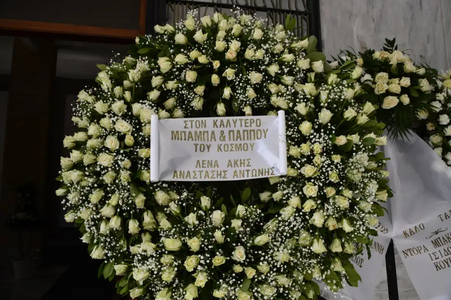 Ιδιαίτερη συγκίνηση προκάλεσε το στεφάνι που έστειλε η Λένα Παπαληγούρα μαζί με τον σύζυγό της και τα δύο τους παιδιά. Το μήνυμα ήταν απλό, τρυφερό και βαθιά ανθρώπινο: «Στον καλύτερο μπαμπά και παππού του κόσμου. Λένα, Άκης, Αναστάσης, Αντώνης», αποτυπώνοντας τη στενή σχέση και την αμέριστη αγάπη που τους ένωνε.