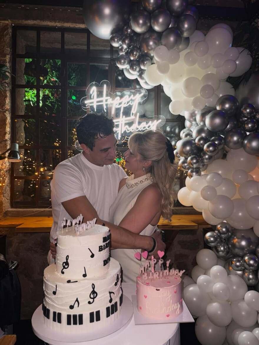 Ο τραγουδιστής απαθανατίστηκε μπροστά από την τούρτα και πόζαρε με την ηθοποιό και αγαπημένα τους πρόσωπα. Στις φωτογραφίες που ανάρτησε η Τζένη Θεωνά παρουσιάστηκαν και λεπτομέρειες από τον στολισμό του χώρου.