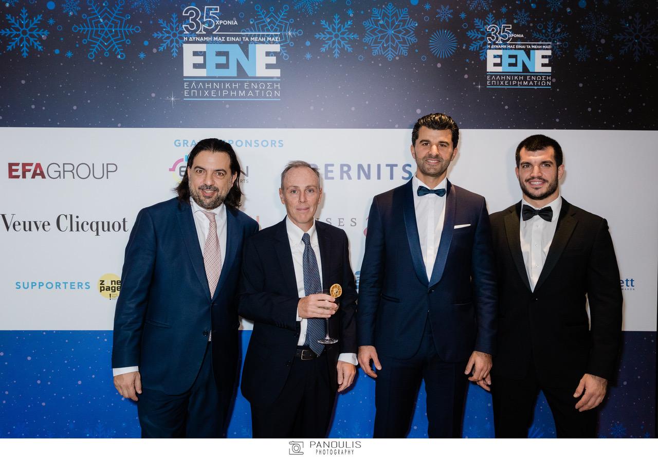 Κατά τη διάρκεια του Gala black tie dinner βραβεύτηκε ο Δρ. Βασίλης Αποστολόπουλος (Επίτιμος Πρόεδρος της Ε.ΕΝ.Ε.) για τη δεκαετή προσφορά του στην ελληνική επιχειρηματικότητα και το κοινωφελές του έργο. Στον συγκινητικό του λόγο, εξήρε το έργο της Ε.ΕΝ.Ε.και υπενθύμισε ότι το «πατριωτικό επιχειρείν» αποτέλεσε αφήγημα που ανέδειξε την Ε.ΕΝ.Ε. στην περίοδο της κρίσης, δημιουργώντας θέσεις εργασίας εντός της χώρας και παράγοντας πλούτο. Εξίσου συγκινητική ήταν και η ομιλία του Σωτήρη Τσαφούλια ο οποίος αναφέρθηκε στο πως συνδυάζεται η τέχνη με το επιχειρείν.