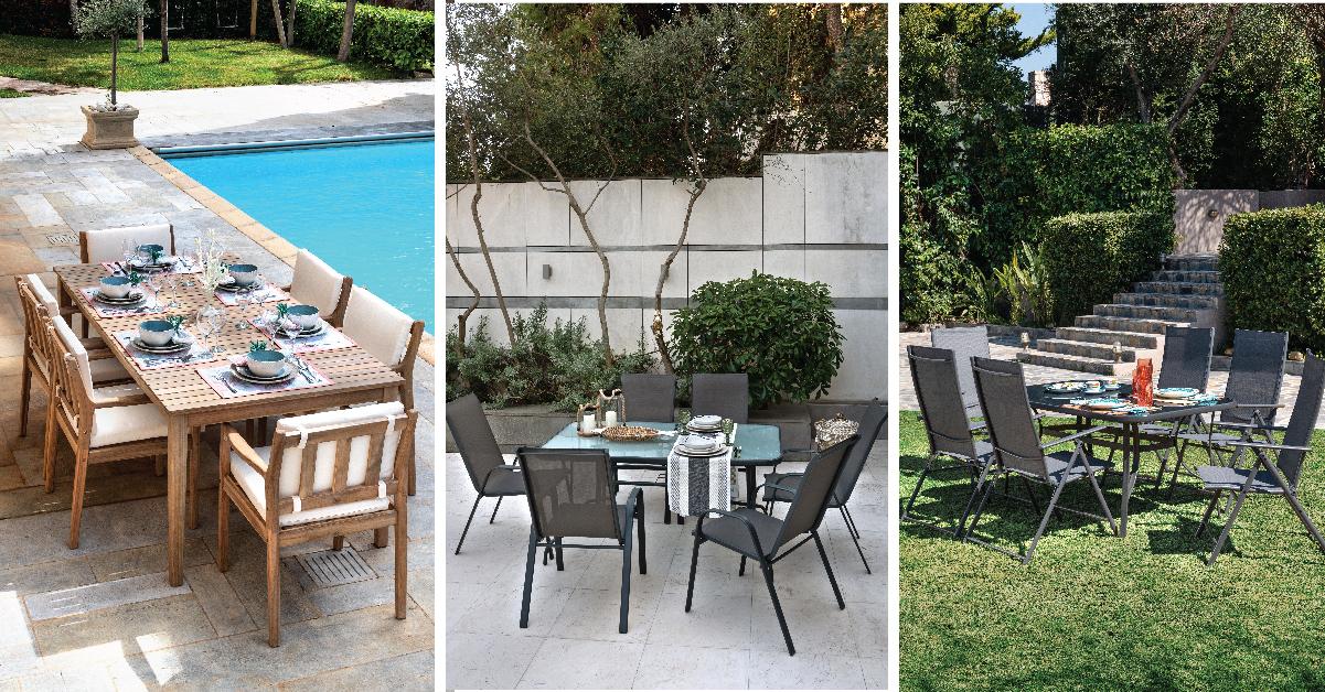 Τραπεζαρίες με μεταλλικούς σκελετούς, αν αγαπάτε το μίνιμαλ ύφος. Τραπεζαρίες από PP πολυπροπυλένιο με UV protection ή wicker συνθετικό rattan, αν για εσάς προέχει το στιλ που αντέχει στον χρόνο. Από φυσικό ξύλο teak, αν το προσωπικό σας γούστο προτιμά τη φυσική κομψότητα.