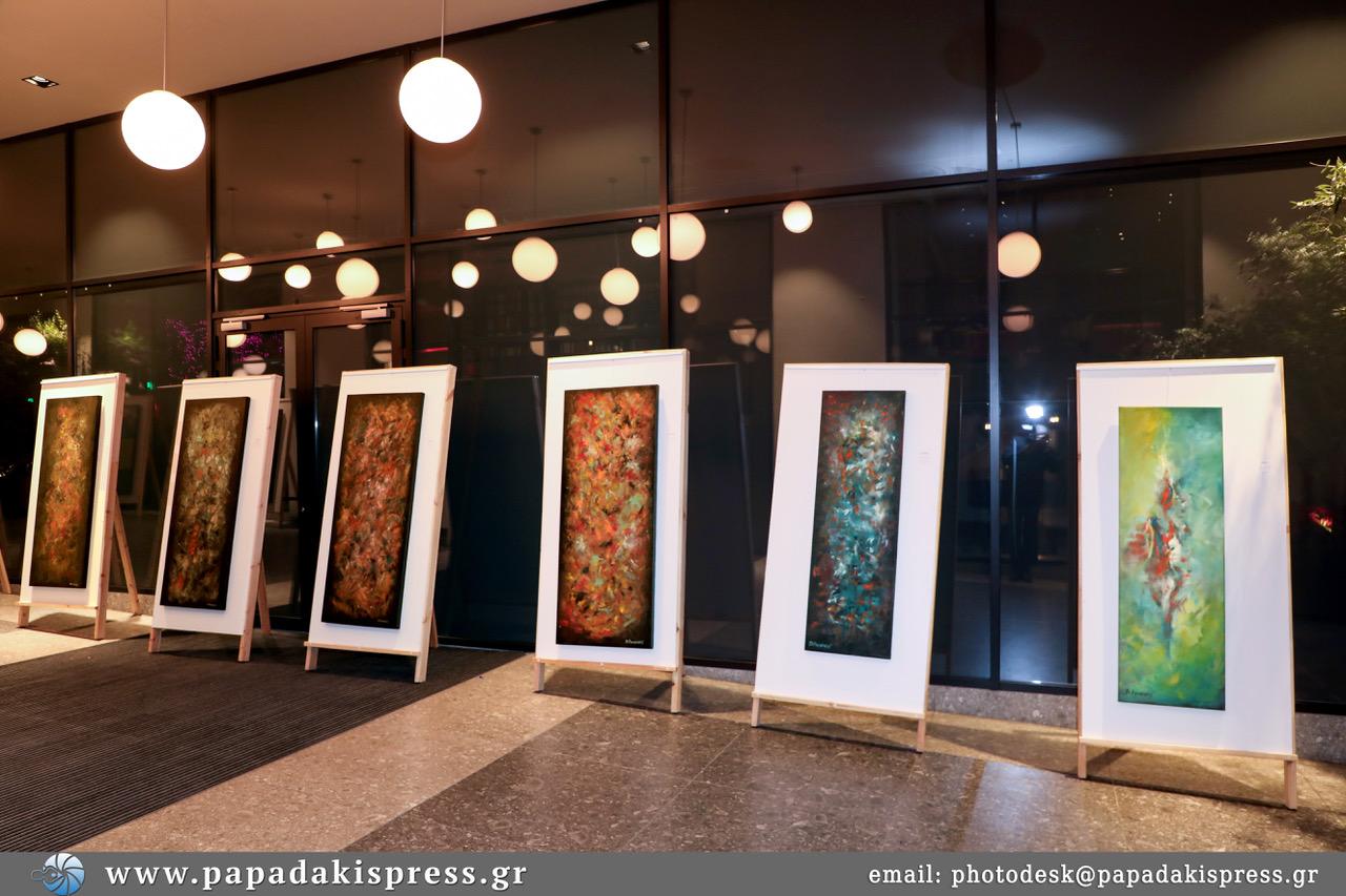 Η έκθεση αποτελεί μια αποτύπωση του δημιουργικού χάους αφενός του σύμπαντος και αφετέρου του ψυχικού και διανοητικού κόσμου των ανθρώπων. Στενόμακροι, εντυπωσιακοί πίνακες, ένα επιβλητικό άγαλμα ανθρώπινου σώματος και χρωματικές συνθέσεις μέσα από την ματιά του καλλιτέχνη, αντικατοπτρίζουν τον εσωτερικό, ψυχικό κόσμο των ανθρώπων. Το μαύρο φόντο κυριαρχεί και διάφορα χρώματα κάνουν την εμφάνιση τους, μαζί με γραμμές, τυχαία σχήματα και κρυμμένες λεπτομέρειες δημιουργώντας έναν χρωματικό κόσμο που εκφράζει τον εαυτό μας.