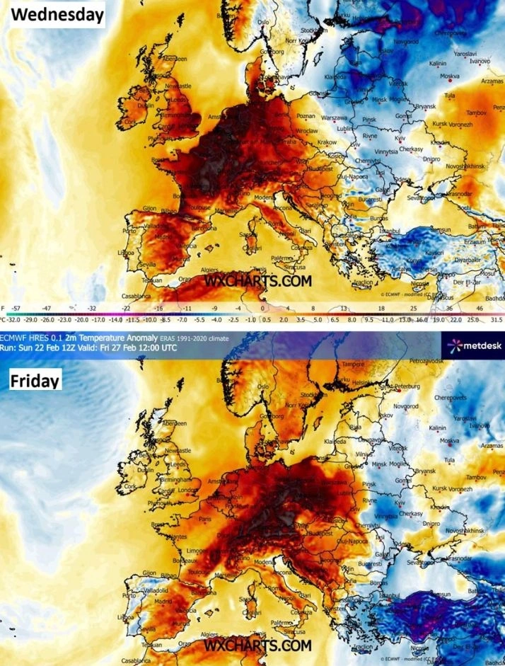 Ένα εντυπωσιακό καιρικό σκηνικό, που θυμίζει περισσότερο Απρίλιο παρά τέλος Φεβρουαρίου, διαμορφώνεται αυτή την εβδομάδα σε Ελλάδα και Βαλκάνια, καθώς ένας ισχυρός θερμός «θόλος» αναπτύσσεται πάνω από την κεντρική και νοτιοανατολική Ευρώπη.