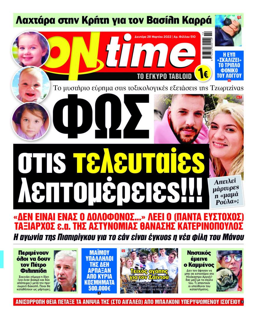 Φως στις τελευταίες λεπτομέρειες!!! Το μυστήριο εύρημα στις τοξικολογικές εξετάσεις της Τζωρτζίνας. Όλο το ρεπορτάζ στην ON Time που κυκλοφορεί