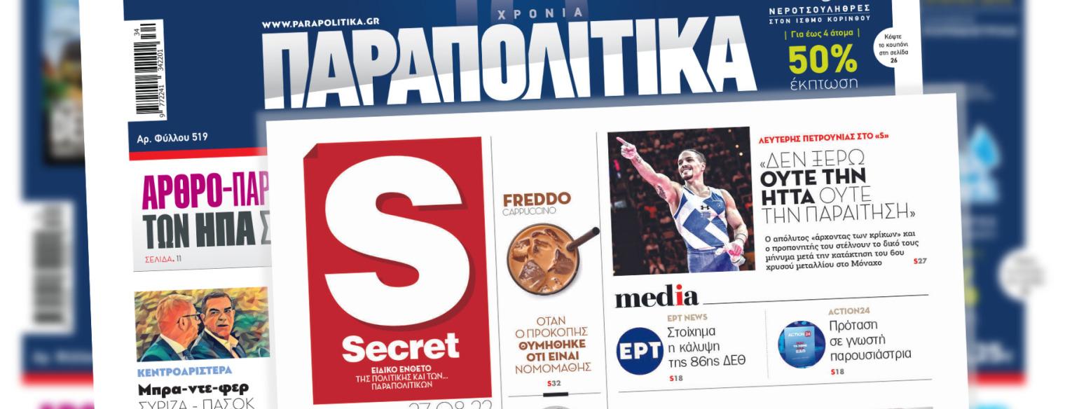 Aύριο Σάββατο 27 Αυγούστου, η εφημερίδα ΠΑΡΑΠΟΛΙΤΙΚΑ κυκλοφορεί σε όλα τα περίπτερα της χώρας με πλούσια θεματολογία και πολλές αποκλειστικότητες. Αποκαλυπτικά θέματα, ρεπορτάζ και μεγάλες προσφορές για όλους τους αναγνώστες μας!