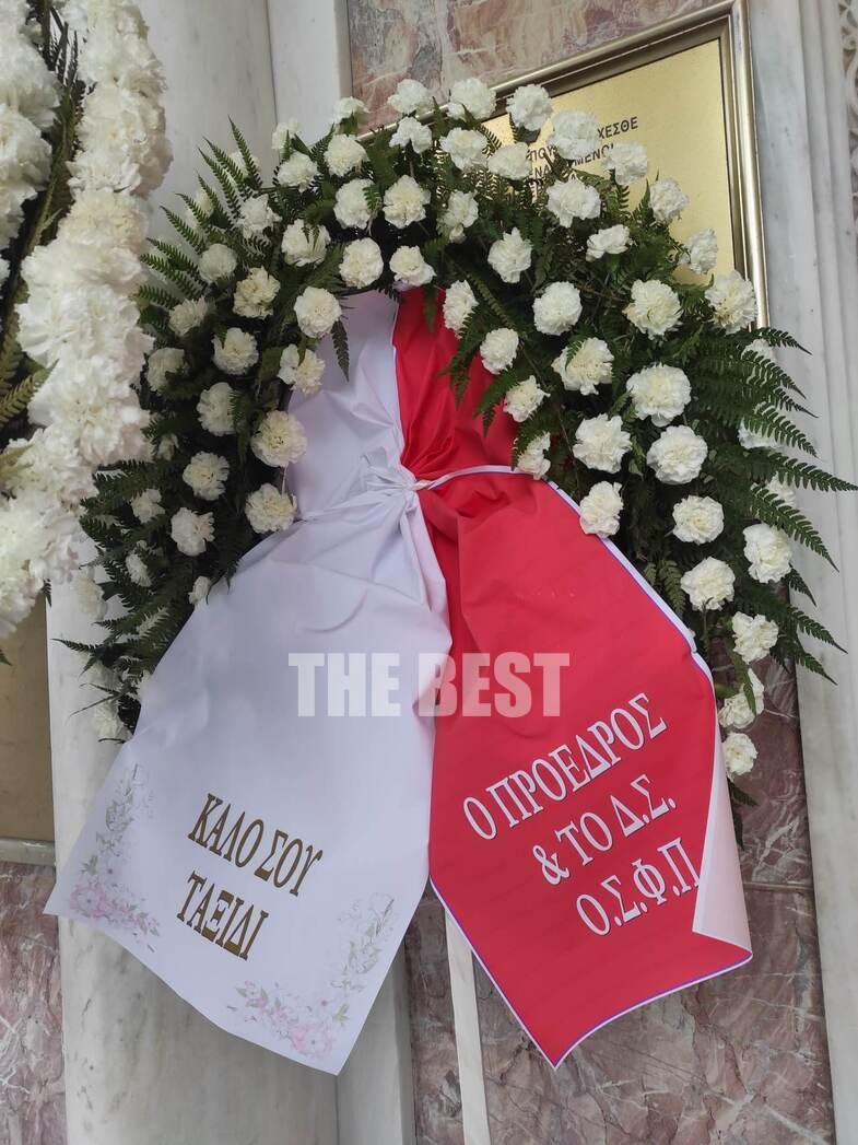 Το παρών στην εξόδιο ακολουθία δίνουν μεταξύ άλλων ο Βαγγέλης Μαρινάκης, o Αχαιός Υφυπουργός Εξωτερικών Ανδρέας Κατσανιώτης, ο Πατρινός γραμματέας της Π.Ε. της ΝΔ Παύλος Μαρινάκης, Δήμαρχος Πειραιά, Γιάννης Μώραλης, ο βουλευτής Ιάσονας Φωτήλας, ο βουλευτής της Α΄Πειραιώς Γιάννης Μελάς, ο Περιφερειάρχης Δυτικής Ελλάδας, Νεκτάριος Φαρμάκης, ο δικηγόρος Αλέξης Κούγιας, ο Κωνσταντίνος Μπογδάνος.