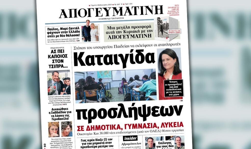 Διαβάστε σήμερα στην «Απογευματινή»: