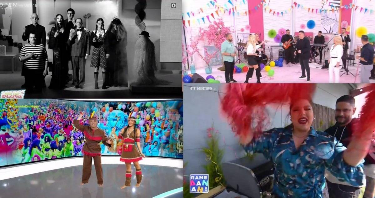 Το έριξαν στον χορό ο Ετεοκλής Παύλου και η Ελένη Χατζίδου στον καταστόλιστο αποκριάτικα χώρο έξω από το πλατό τους.