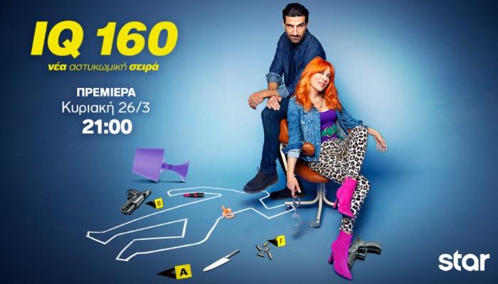 Την Κυριακή 26 Μαρτίου στις 21.00 με διπλό επεισόδιο κάνει πρεμιέρα η νέα κωμική σειρά του STAR «Ι.Q 160» με πρωταγωνιστές τη Σμαράγδα Καρύδη και τον Νίκο Κουρή.