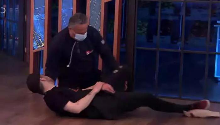 Η διαδικασία στο MasterChef διακόπηκε για ένα τέταρτο για να εκτιμηθεί η κατάσταση του παίκτη και να αξιολογηθεί το αν θα μπορέσει να επιστρέψει στην δοκιμασία.