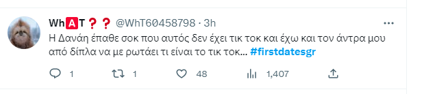 Η συζήτηση σε κάποια στιγμή έφτασε στα επαγγελματικά τους με την ίδια να λέει στον συνοδό της πως έχει έναν πολύ ενεργό λογαριασμό στο Instagram αλλά και στο Tik Tok, με αποτέλεσμα σε λίγα χρόνια να εύχεται να βιοπορίζεται μέσα από αυτές τις διαδικτυακές πλατφόρμες, σαν σωστή «influencer». Εκεί ήρθε και το δεύτερο φάουλ από την ίδια, αφού ο Στάθης της είπε πως δεν έχει Tik Tok, με την ίδια να απαντά πως «είναι σαν να μιλάει με τον μπαμπά της».