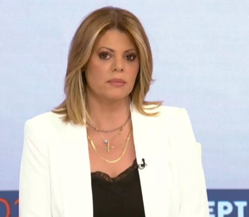 Όσο για την Χριστίνα Βίδου στην ΕΡΤ, προτίμησε και αυτή το λευκό σακάκι, το οποίο συνδύασε με μαύρο τοπ και μια σειρά από κοσμήματα στον λαιμό.