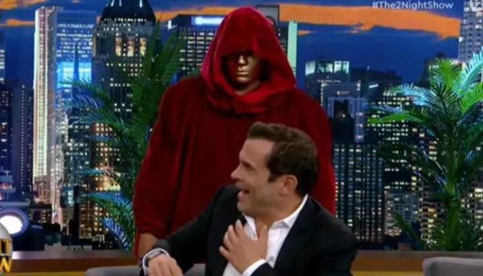 Όσο ο Κωνσταντίνος Μαρκουλάκης ανέφερε τι τον γοήτευσε στο συγκεκριμένο παιχνίδι, ξαφνικά ένας από τους συνεργάτες της εκπομπής εμφανίστηκε από πίσω του με την αμφίεση που έχουν οι Προδότες.